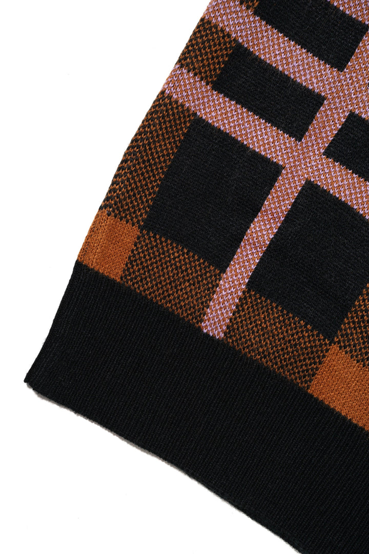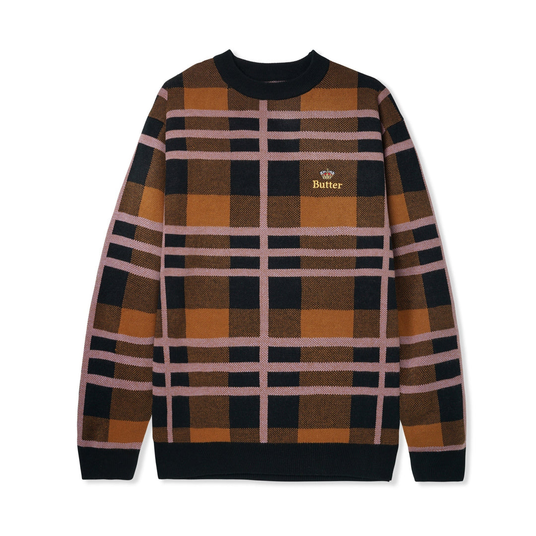 Butter Goods Fleece Plaid Knit Sweater, Black / Brown / Purple