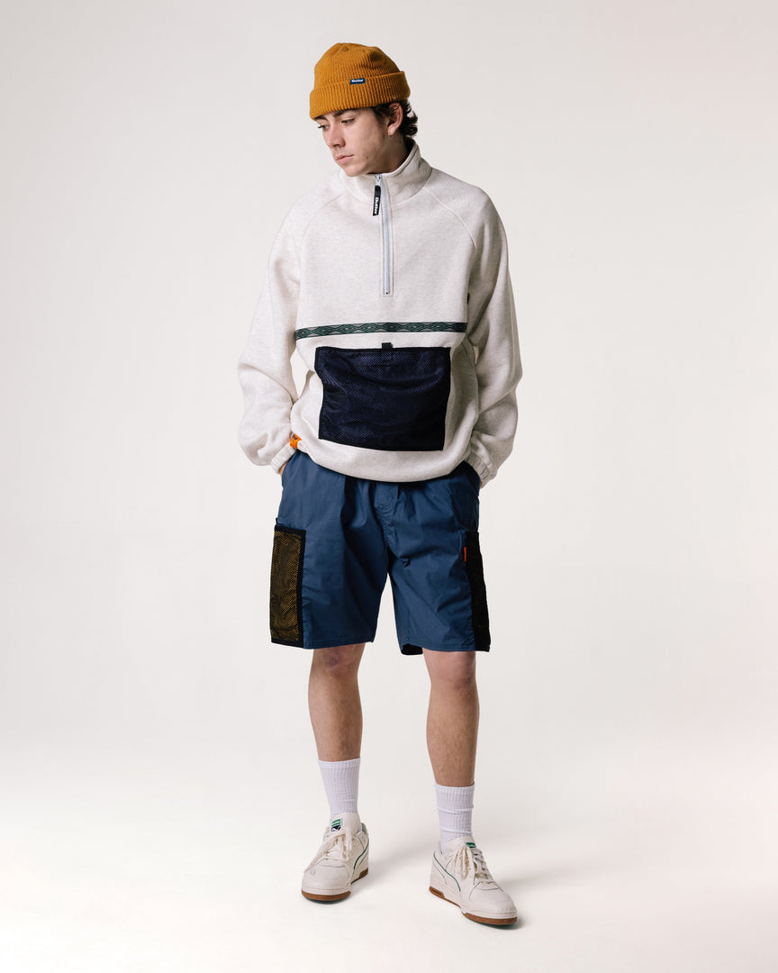Mesh Fleece 1/4 Zip Pullover, Oatmeal, Size Large