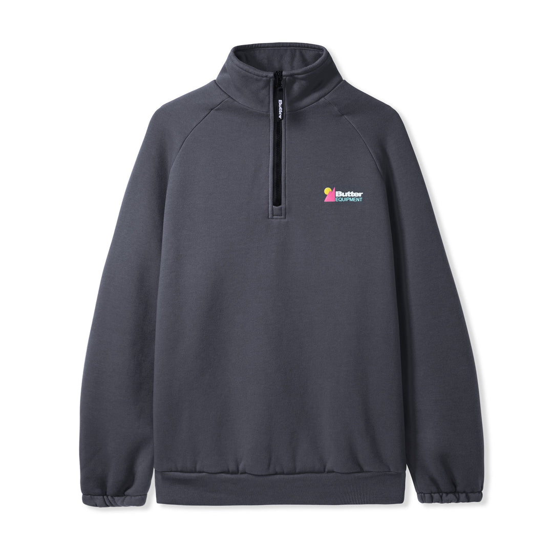 Butter Goods Pigment Dye 1/4 Zip Pullover, Washed Black Fleece
