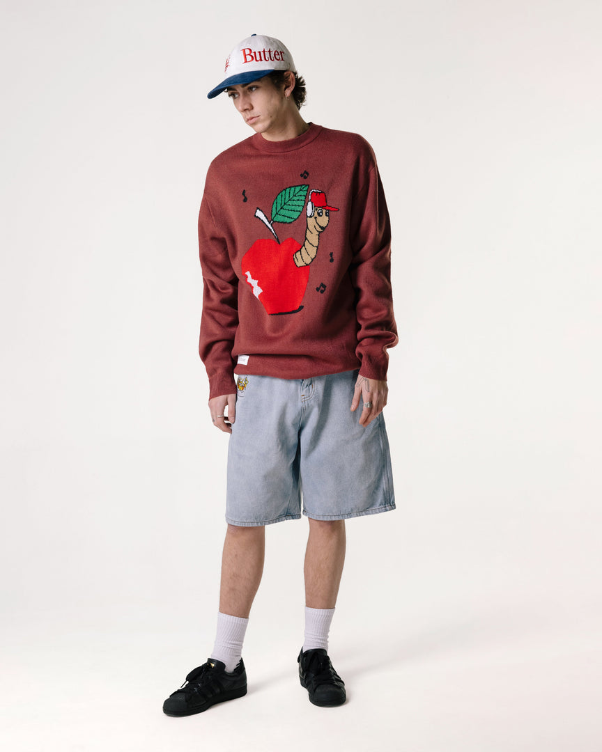 Worm Knit Sweater, Wine, Size Large