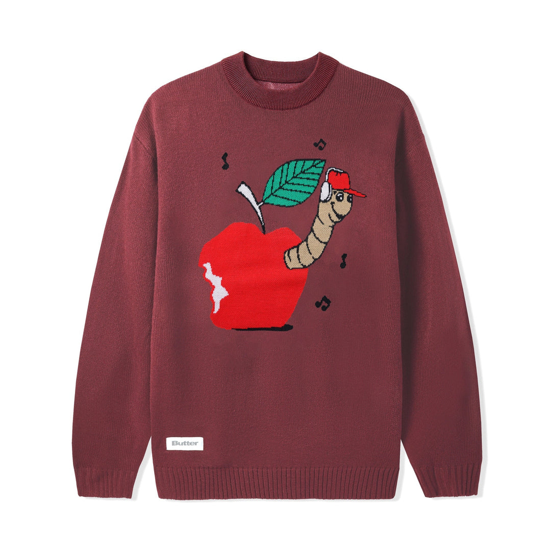 Worm Knit Sweater, Wine, Size Large